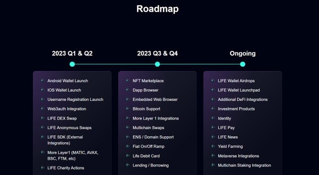 - LIFE Pay: Life will launch a payment gateway for merchants that accept LIFE tokens as payment for goods and services.